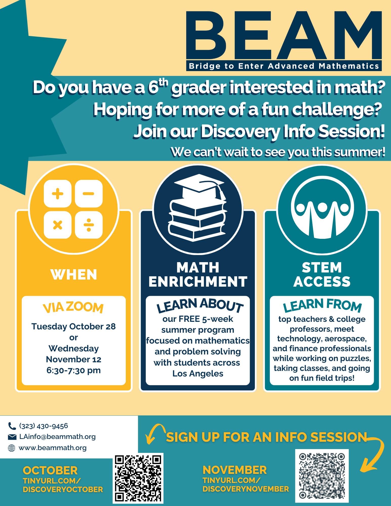 Do you have a 6th grader interested in math? Hoping for more of a fun challenge? Join our Discovery Info Session! ZOOM LINK: https://us02web.zoom.us/meeting/register/ARIgBJDmR4uAn_e_VbY4FA